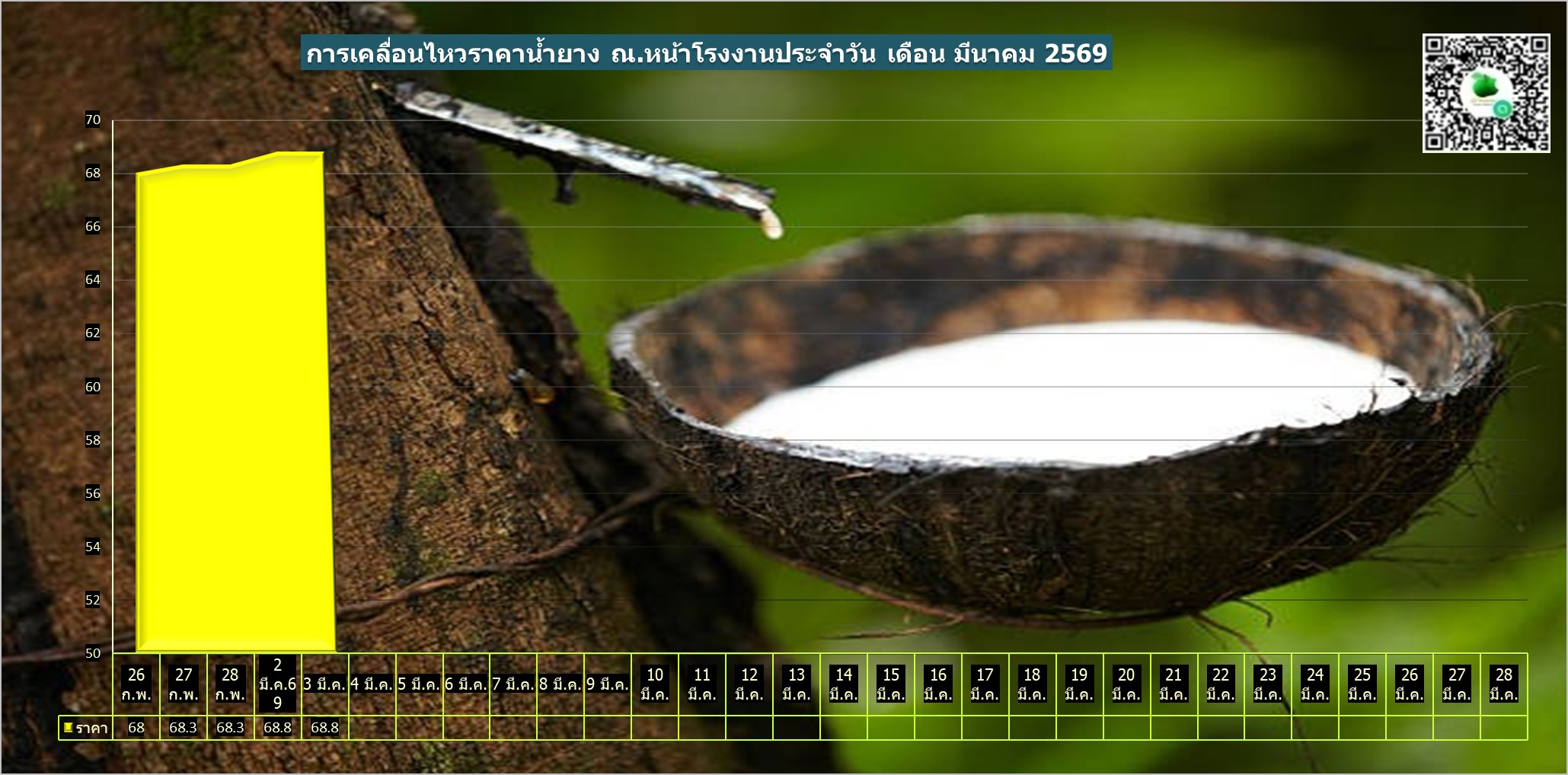 สรุปราคาน้ำยางโรงงานและลานท้องถิ่นทั่วไปประจำวัน อังคาร ที่ 3 มีนาคม 2569