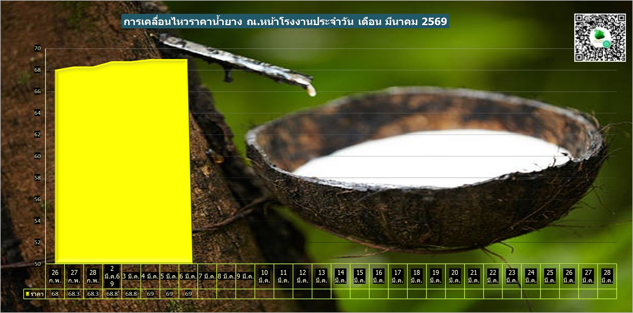 สรุปราคาน้ำยางโรงงานและลานท้องถิ่นทั่วไปประจำวัน ศุกร์ ที่ 6 มีนาคม 2569