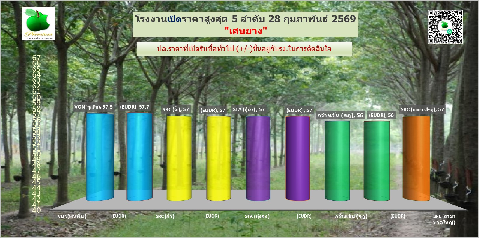 สรุปราคายางแผ่นรม/ดิบ เศษยาง เครฟ โรงงานทั่วไปประจำวัน เสาร์ ที่ 28 กุมภาพันธ์ 2569