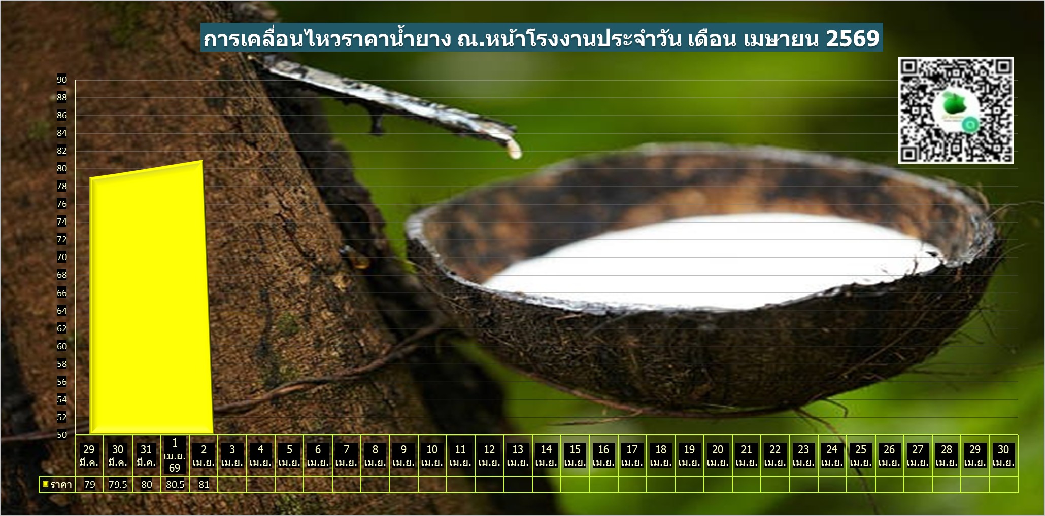 สรุปราคาน้ำยางโรงงานและลานท้องถิ่นทั่วไปประจำวัน พฤหัสฯ ที่ 2 เมษายน 2569